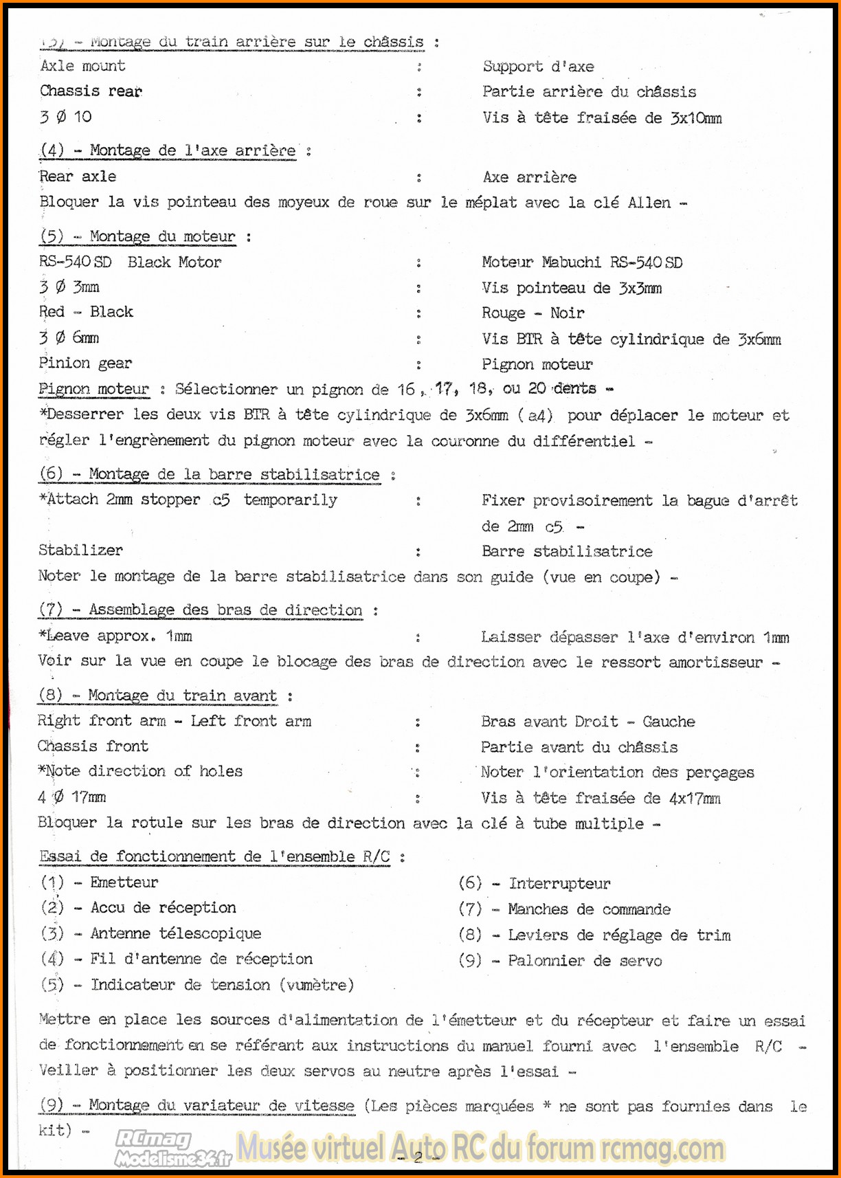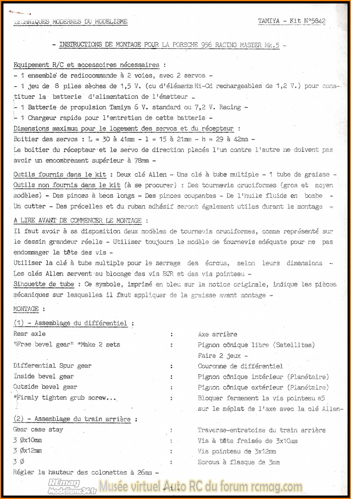 Notice française de la Porsche 956 Racing Master MK.5 - Référence 58042 - Collection RCmag