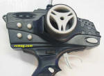 Le bouton blanc placé sous la gâchette sert à enclencher la marche