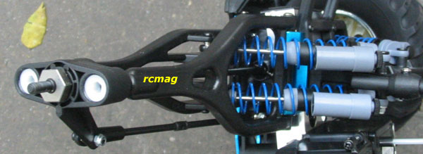 2 amortisseurs en plastique par roue ( ressemble aux anciens Tamiya ).