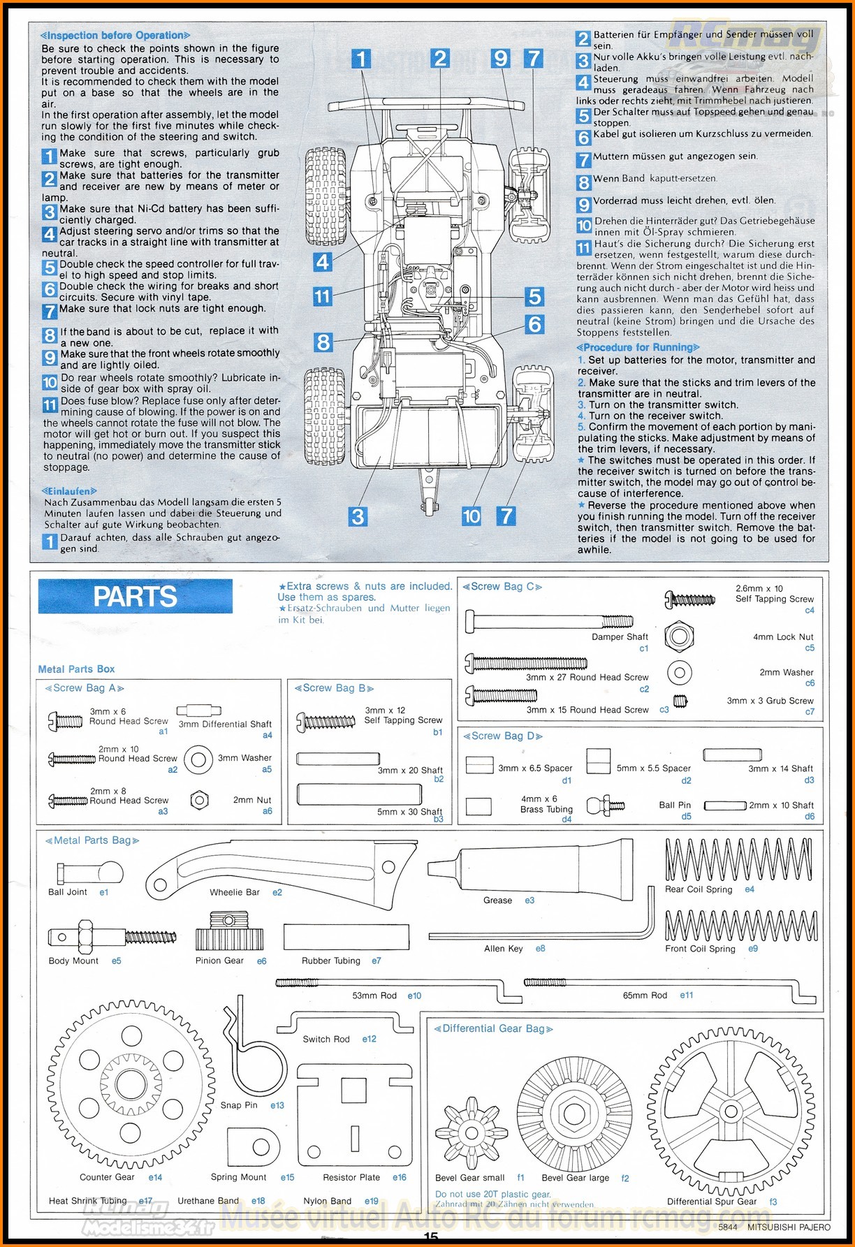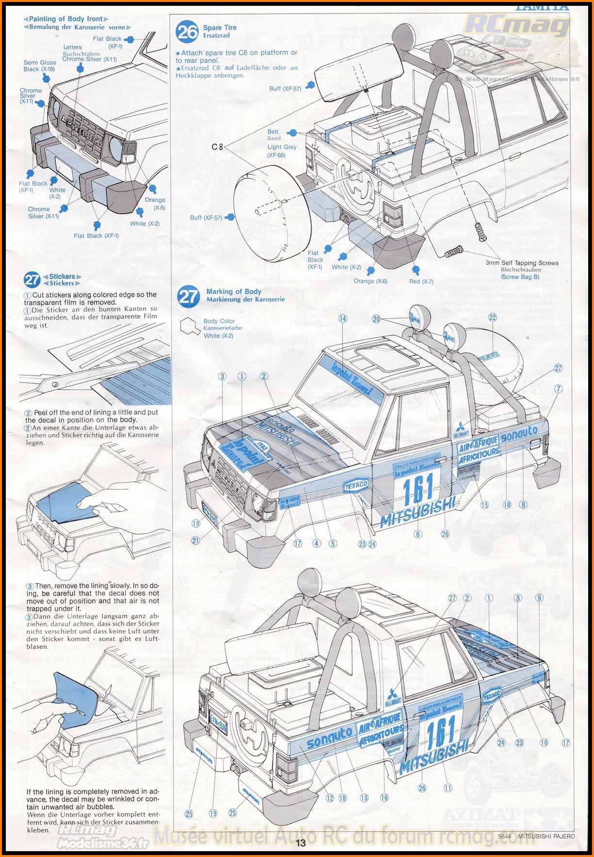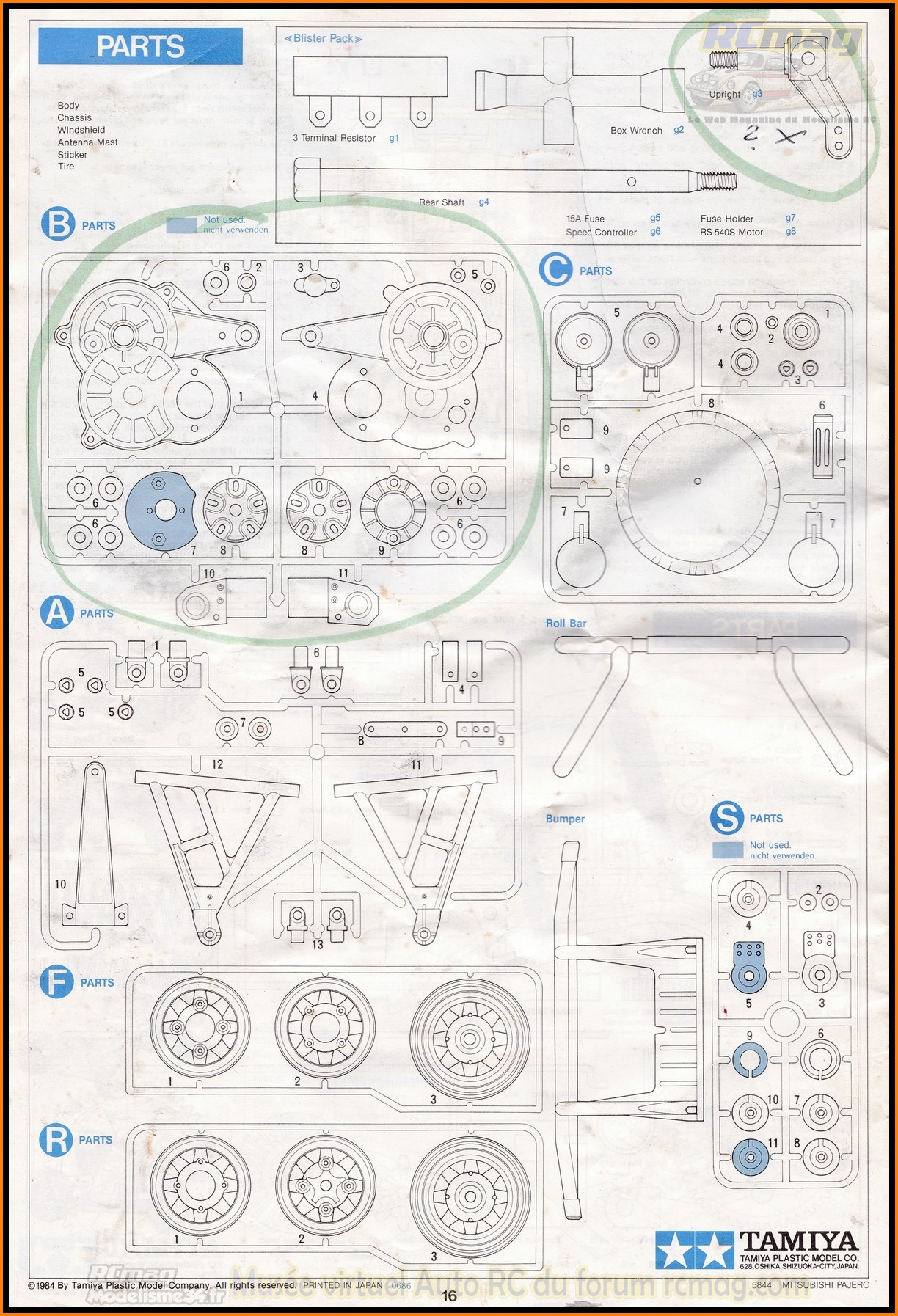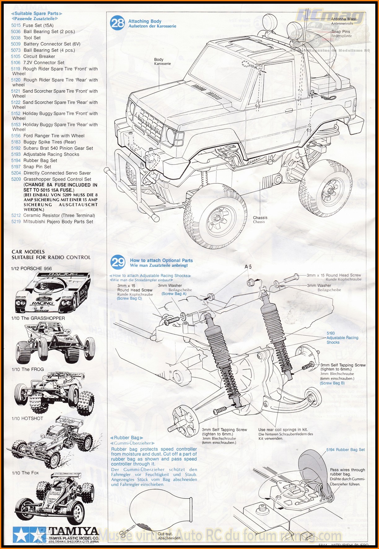 Notice du Tamiya Pajero rallye 58044 de 1984 - Collection RCmag
