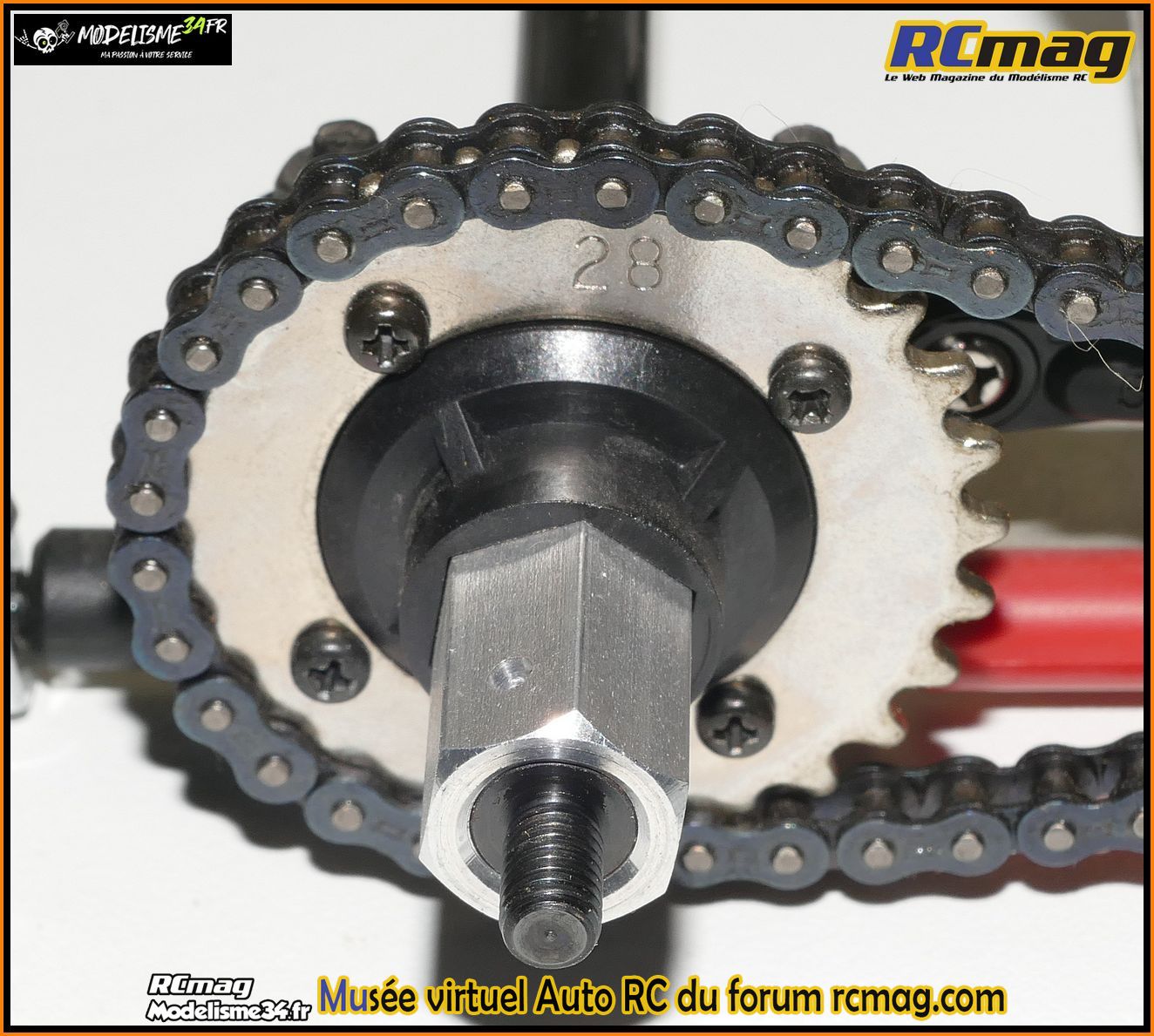 Le moteur Kyosho GS11X avec la transmission secondaire par chaine.